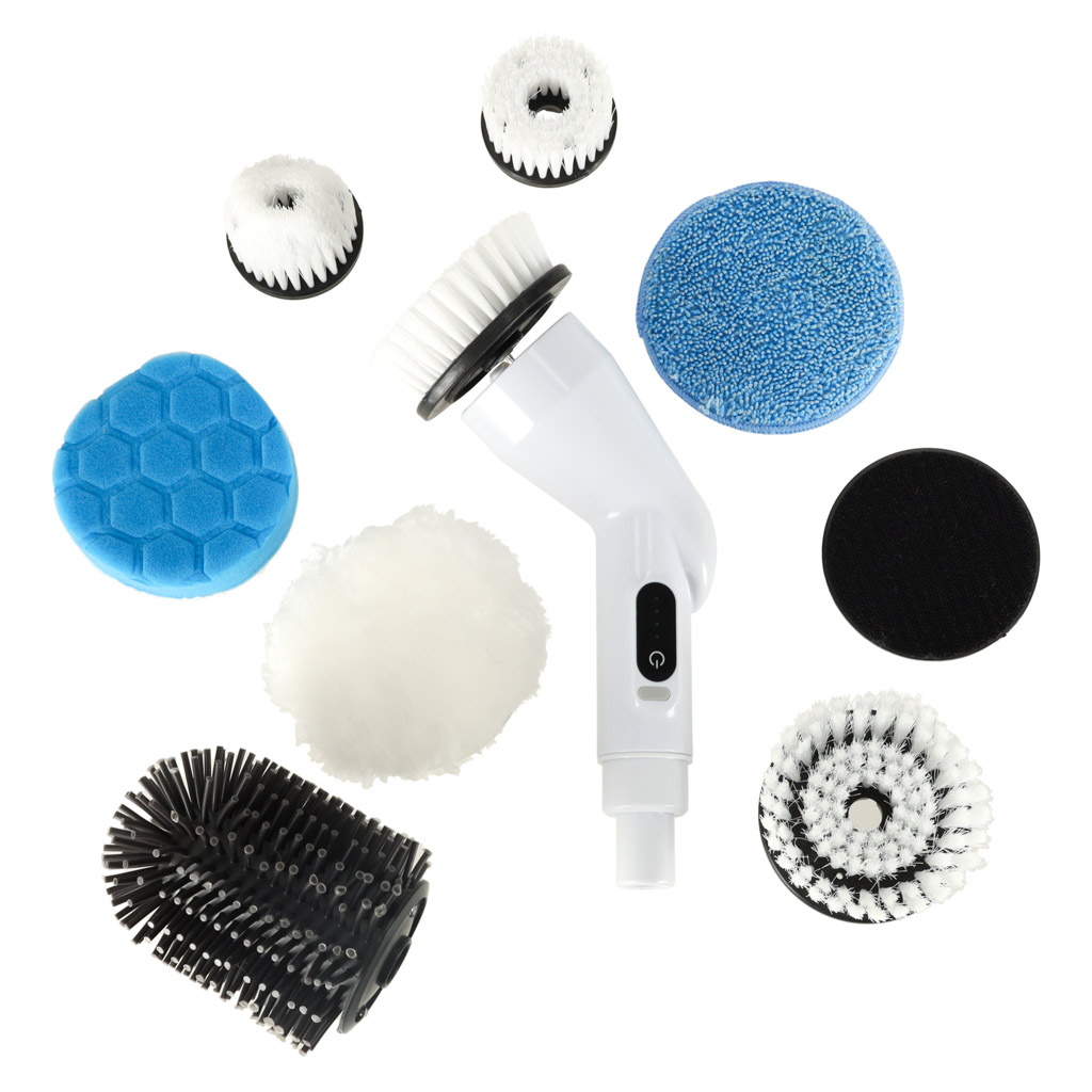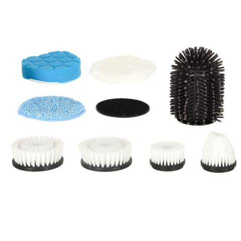 9 wymiennych głowic szczotkujących – które zapewniają wszechstronność i skuteczność w czyszczeniu różnych powierzchni