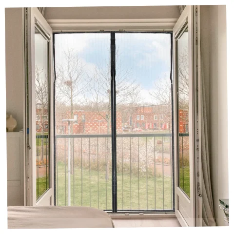 Wykonana z drobnej i przewiewnej siatki przeciw owadom, moskitiera nie ogranicza widoczności ani dopływu światła dziennego. Jednocześnie działa jak niewidzialna tarcza – zatrzymuje owady na zewnątrz, zapewniając spokojne popołudnia i noce bez uciążliwego bzyczenia. Zintegrowane magnesy rozmieszczone na całej długości środkowego zapięcia sprawiają, że materiał automatycznie się zamyka po przejściu – to idealna opcja dla domów z dziećmi i zwierzętami, gdzie często pozostawia się drzwi otwarte.