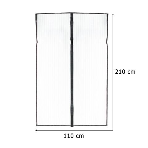 Czarna moskitiera na drzwi 110×210 cm z siatki poliestrowej skutecznie chroni przed owadami. Samodomykająca – zamknięcie na 7 par magnesów blokowych i 6 pasków magnetycznych. Montaż bez wiercenia – na rzepy lub pinezki. Waga tylko 300 g