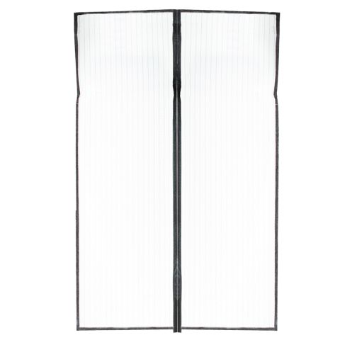 Czarna moskitiera na drzwi 110×220 cm z siatki poliestrowej skutecznie chroni przed owadami. Samodomykająca – zamknięcie na 7 par magnesów blokowych i 6 pasków magnetycznych. Montaż bez wiercenia – na rzepy lub pinezki. Waga tylko 300 g