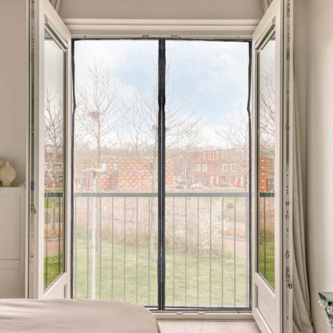 Wykonana z drobnej i przewiewnej siatki przeciw owadom, moskitiera nie ogranicza widoczności ani dopływu światła dziennego. Jednocześnie działa jak niewidzialna tarcza – zatrzymuje owady na zewnątrz, zapewniając spokojne popołudnia i noce bez uciążliwego bzyczenia. Zintegrowane magnesy rozmieszczone na całej długości środkowego zapięcia sprawiają, że materiał automatycznie się zamyka po przejściu – to idealna opcja dla domów z dziećmi i zwierzętami, gdzie często pozostawia się drzwi otwarte.