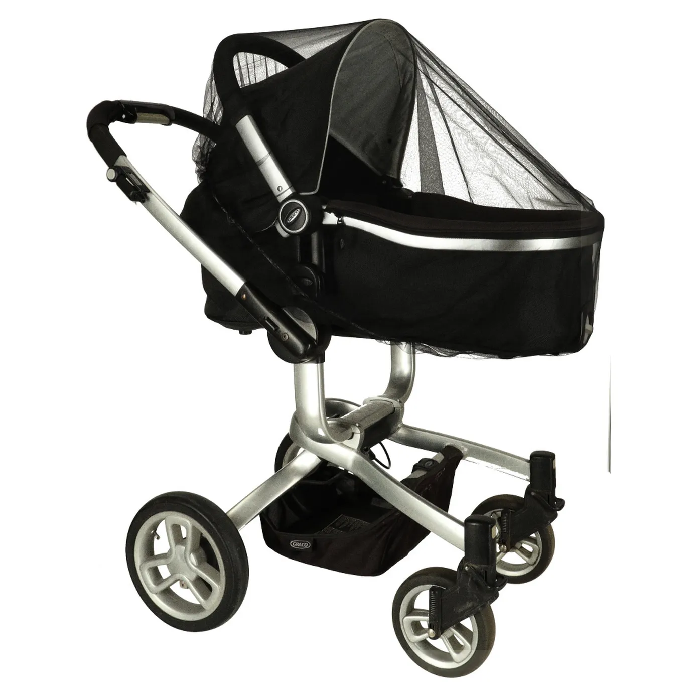 Moskitiera na gumce do wózka zapewnia ochronę przez owadami, ale jednocześnie również jest niezwykle przewiewna i nie ogranicza widoczności. Kolor: czarny. Tworzywo: poliester. Długość gumki: 140 cm.