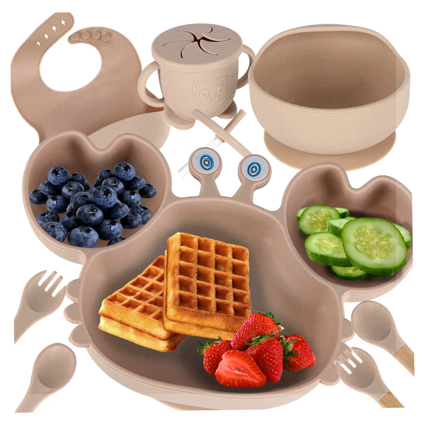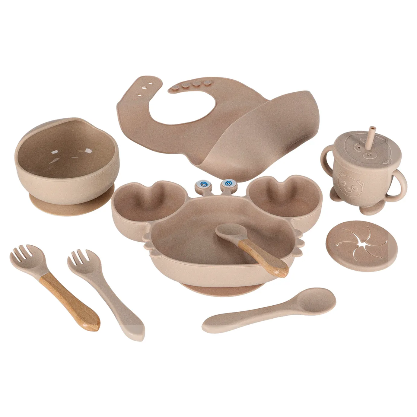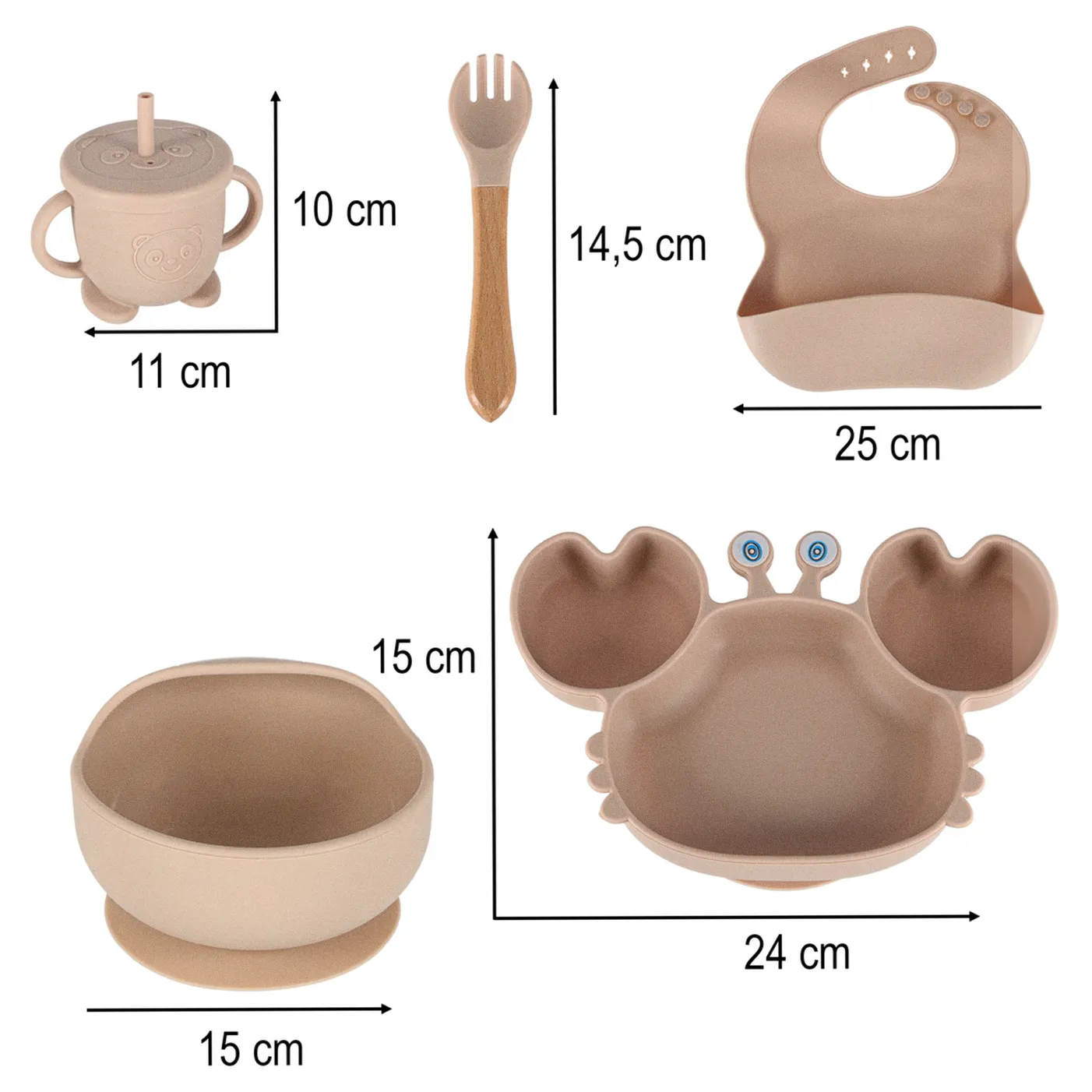 Naczynia silikonowe dla dzieci niemowląt krab zestaw 9 elementów beżowe