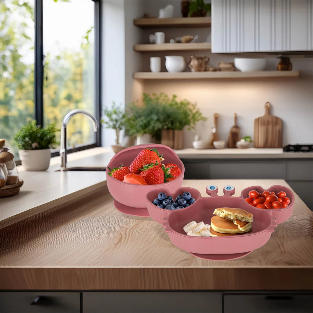 NACZYNIA DLA DZIECI – ZESTAW SILIKONOWYCH NACZYŃ 9 ELEMENTÓW KRAB