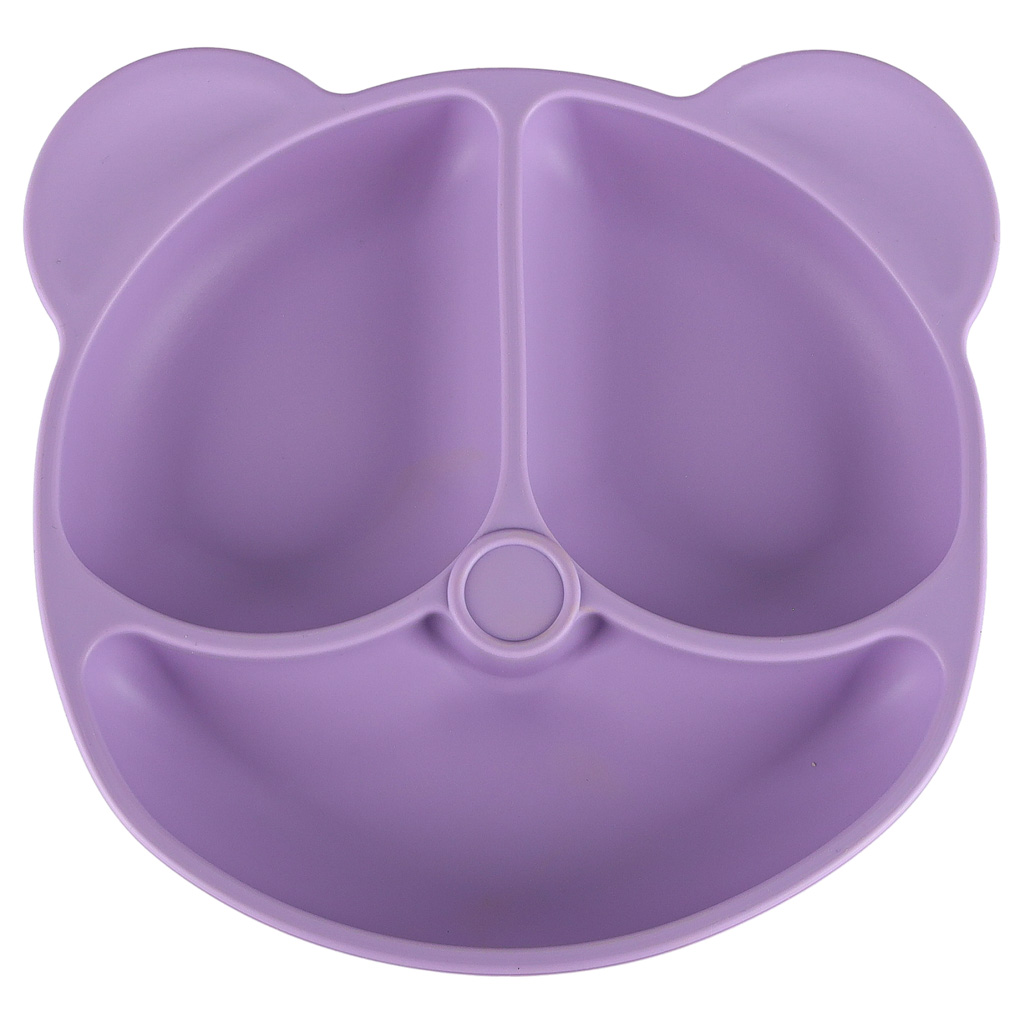 ZESTAW 8 ELEMENTÓW NACZYŃ SILIKONOWYCH W KSZTAŁCIE MISIA 6M+ FIOLETOWY