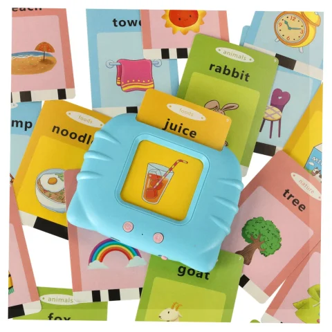 Nauka języka angielskiego czytnik kart do nauki słówek fiszki niebieski