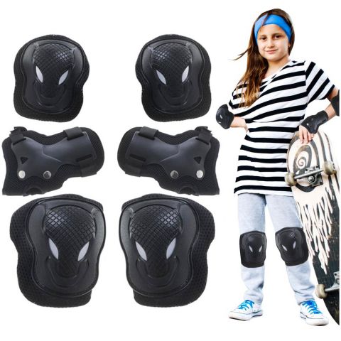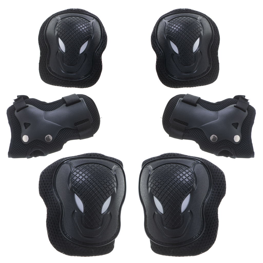 Praktyczny zestaw ochraniaczy na kolana, łokcie i nadgarstki. Zapewniają doskonałą ochronę najbardziej narażonych na uszkodzenia stawów podczas jazdy na rolkach, wrotkach, desce czy rowerze. Tworzywo: plastik, poliester. Ilość elementów: 6.