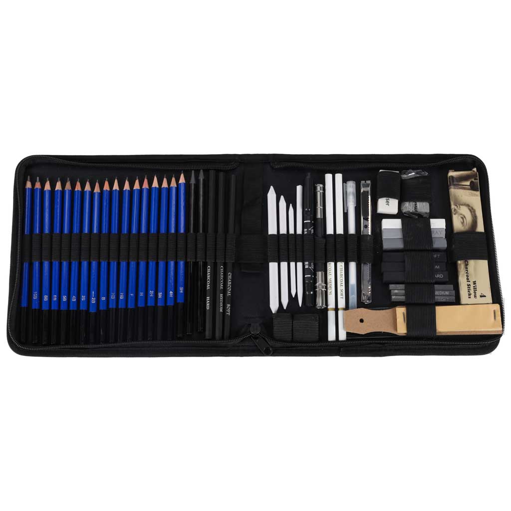 • Kompletny zestaw przyborów do rysowania ołówkiem i węglem, idealny do szkicu i detalu