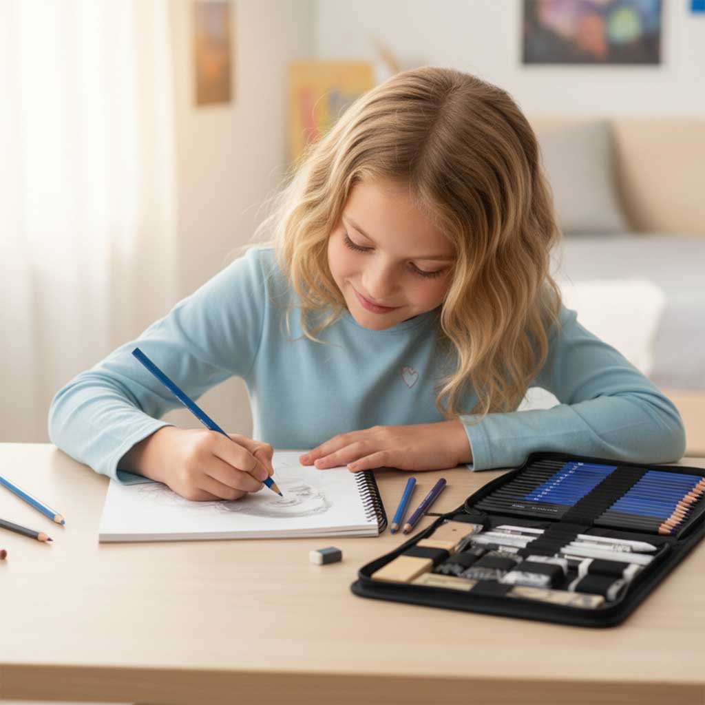 Wszechstronny zestaw artystyczny 54 elementy łączy ołówki grafitowe, węgiel, sztyfty, akcesoria i szkicownik A5, zapewniając pełną swobodę tworzenia. Idealny dla początkujących i zaawansowanych twórców, ceniących jakość, różnorodność + wygodne etui.
