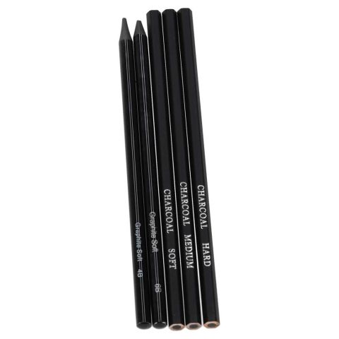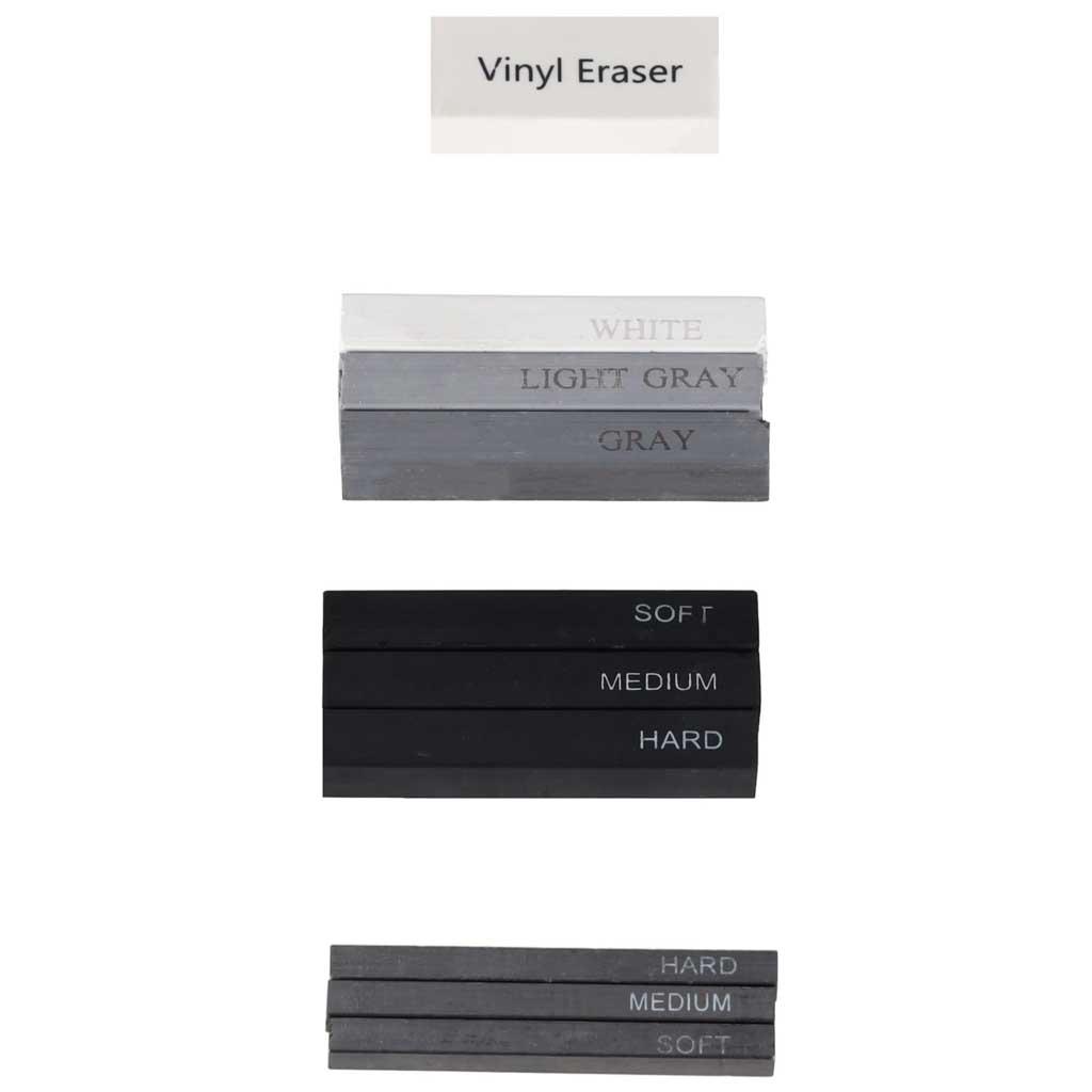 • Węgiel w sztyfcie (3 węgle w kolorze białym, jasnoszarym i ciemnoszarym oraz 3 czarne węgle – miękki, średni i twardy)