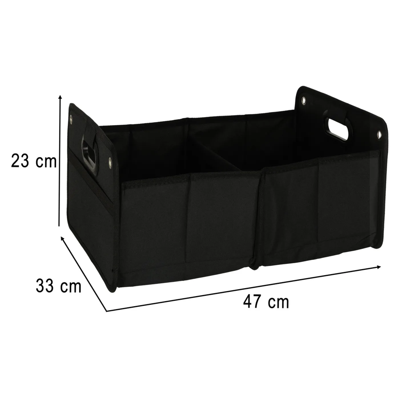 Torba-organizer do bagażnika pozwoli skutecznie utrzymać porządek i przewieźć bezpiecznie w aucie niewielkie przedmioty. Rozkładane przegródki zajmują niewiele miejsca, ułatwiając rozplanowanie przestrzeni także w małych samochodach.