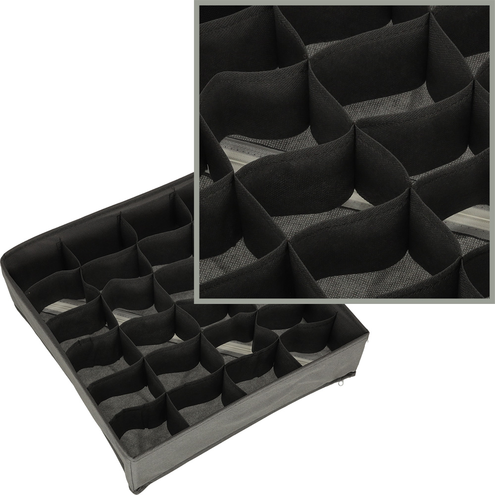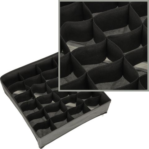 Praktyczny organizer na bieliznę upora się z każdym bałaganem w szufladzie. Dzięki 24 przegrodom posegregujesz skarpetki, bieliznę, ale też krawaty, podkoszulki, stroje kąpielowe czy nawet paski!