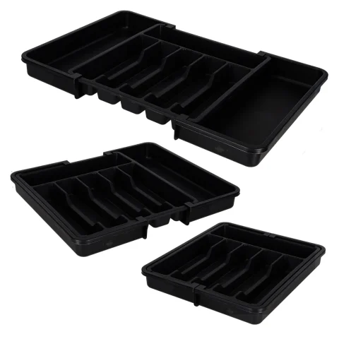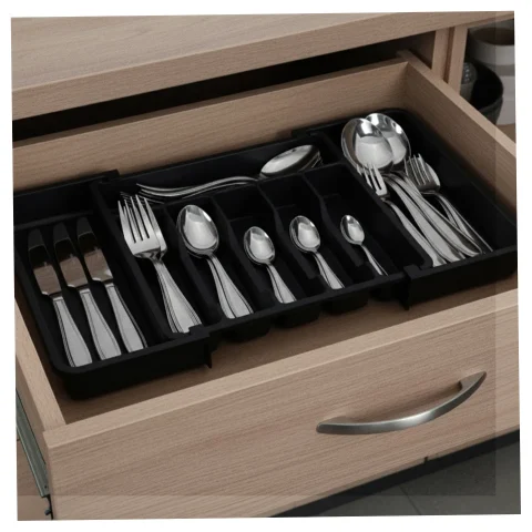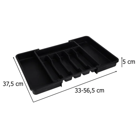 Rozsuwany organizer na sztućce do szuflady wykonany z wysokiej jakości tworzywa sztucznego. Posiada 8 komór, rozsuwaną konstrukcję i regulowaną szerokość wkładu (33–56,5 cm). Modułowy wkład do szuflady kuchennej zapewnia precyzyjne dopasowanie i trwałość.