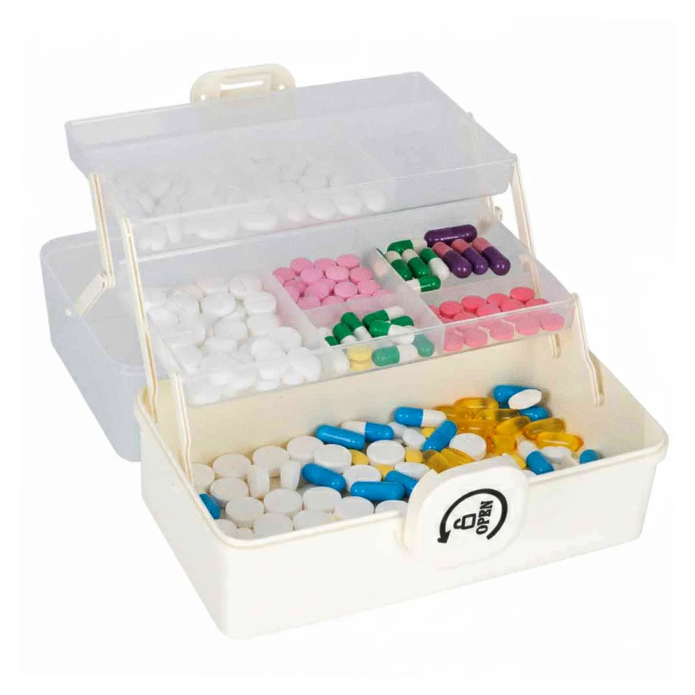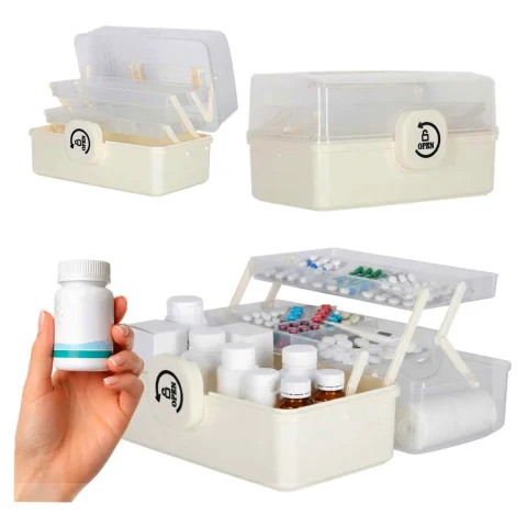 Organizer na lekarstwa XL to szybki sposób na porządek w apteczce domowej. Trzy poziomowe przegrody pozwalają wygodnie ułożyć większą ilość leków, a praktyczna rączka ułatwiająca przenoszenie sprawdza się na co dzień. Wymiary: 29x19x15,5 cm.