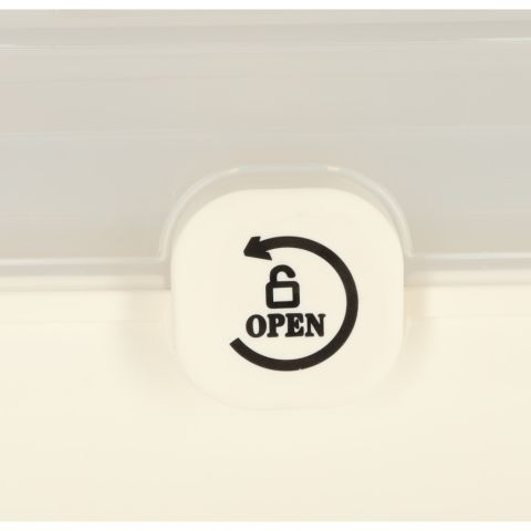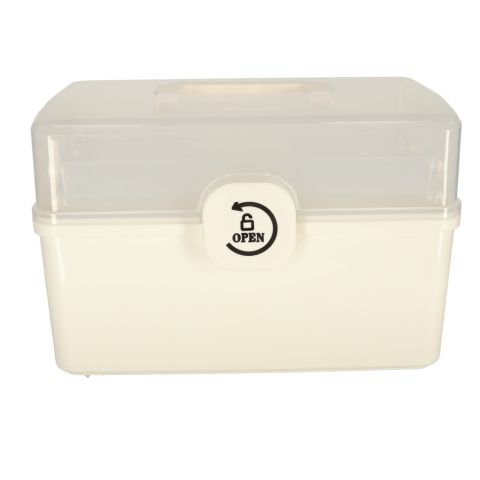 Przezroczyste wieczko ułatwia dostrzeżenie poszukiwanego medykamentu jeszcze bez otwierania domowej apteczki.