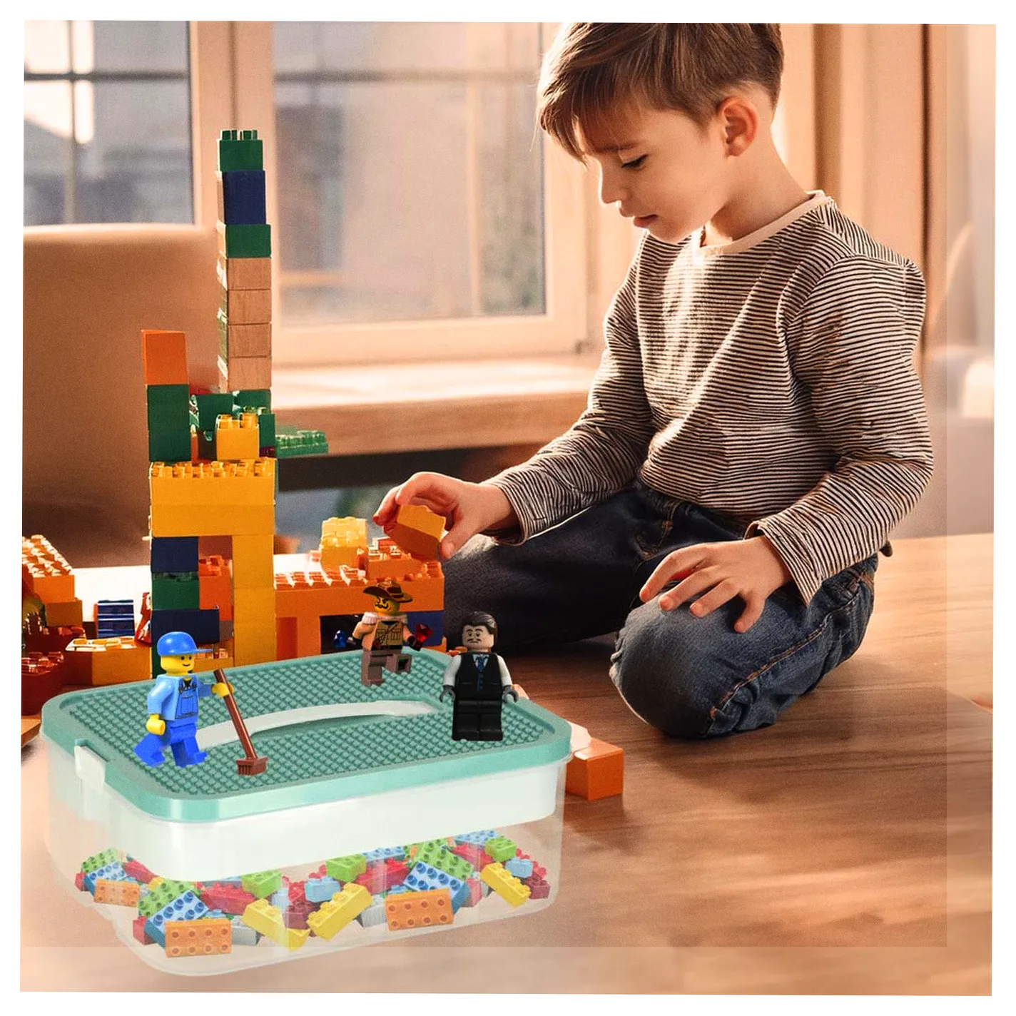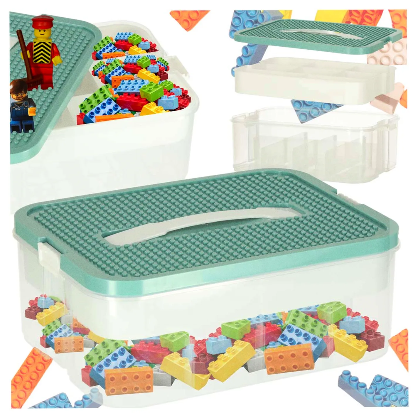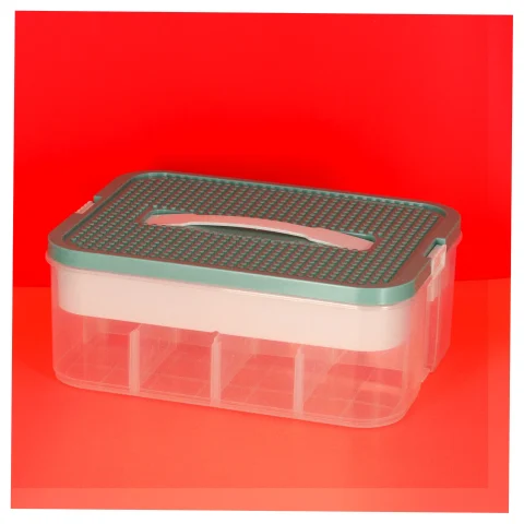 Organizer pudełko pojemnik na klocki zabawki drobiazgi z pokrywą przegródkami