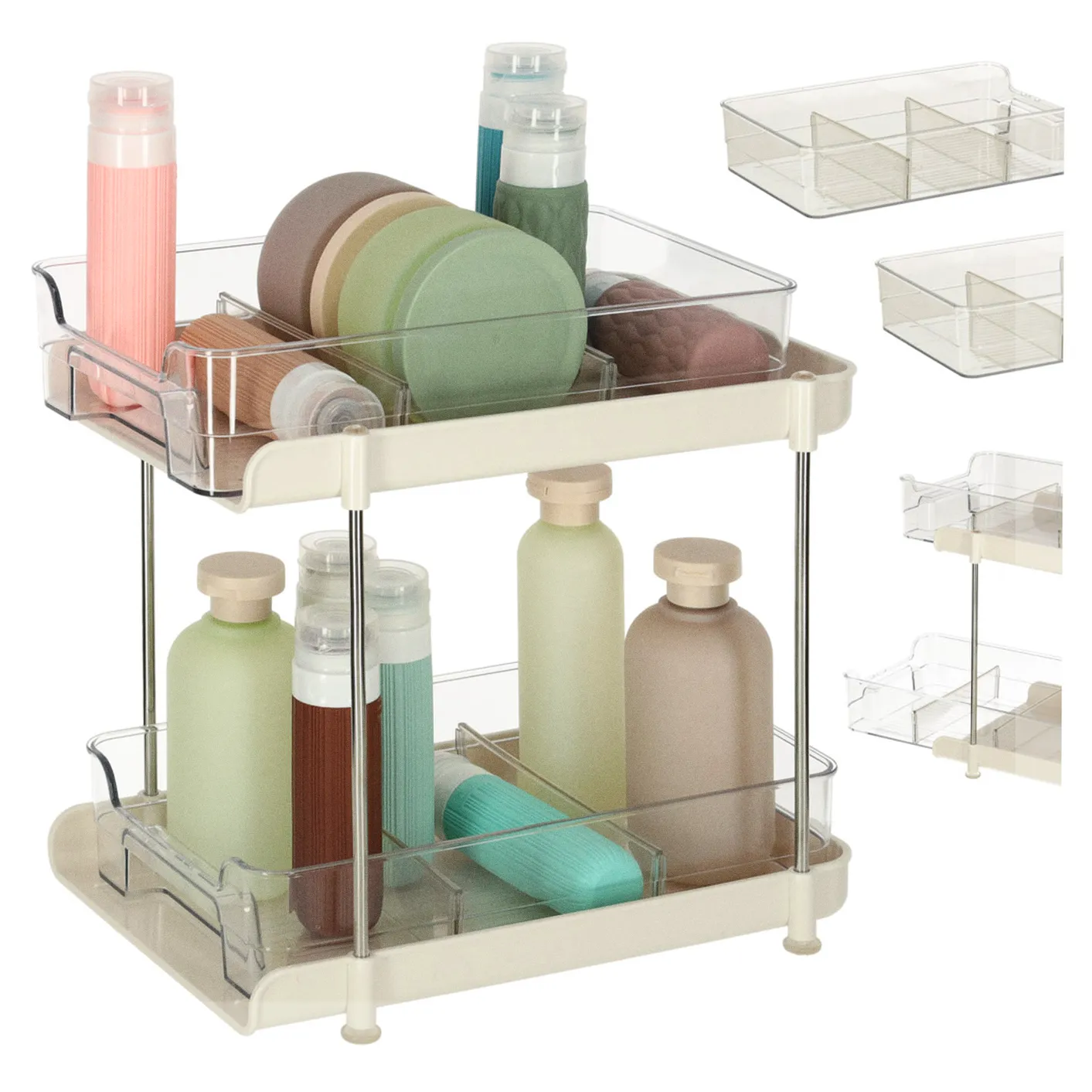 Dwupoziomowy organizer akrylowy to stylowe i funkcjonalne rozwiązanie, które sprawdzi się w każdym wnętrzu – od kuchni i łazienki po domowe biuro. Dzięki przemyślanej, wysuwanej konstrukcji organizer ułatwia utrzymać porządek, ale również pozwala na szybkie odnalezienie potrzebnych przedmiotów. To niezastąpiony pomocnik w codziennej organizacji!