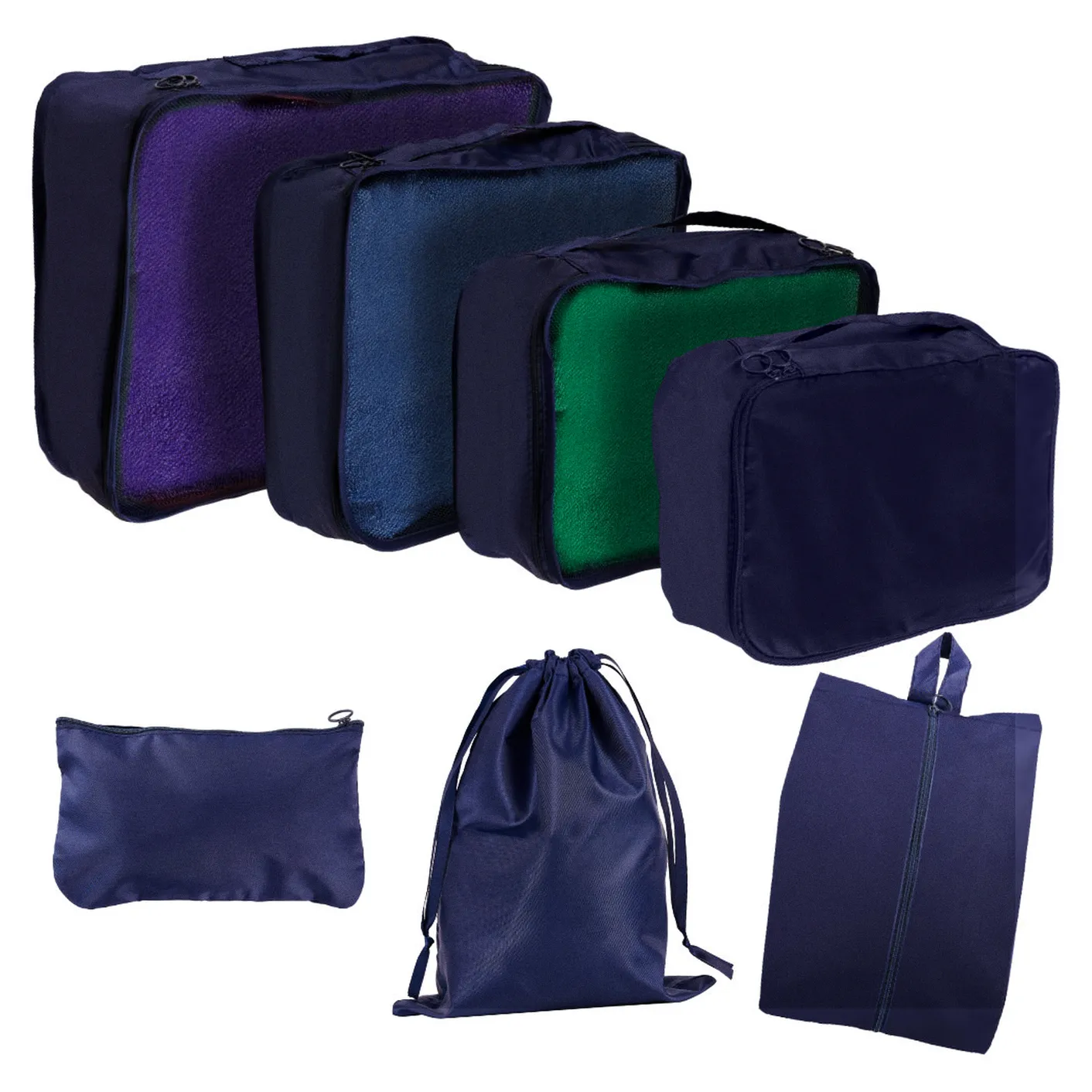Organizery do walizki zestaw podróżny 7 sztuk akcesoria do przechowywania ubrań torby wodoodporne worek na buty granatowy
