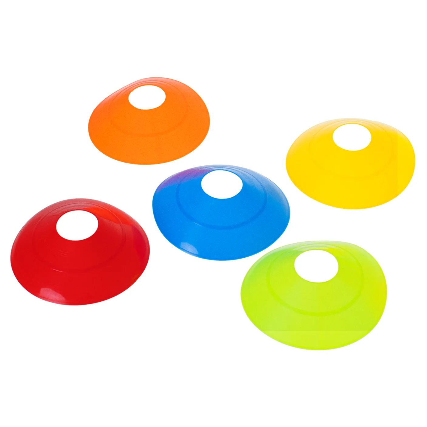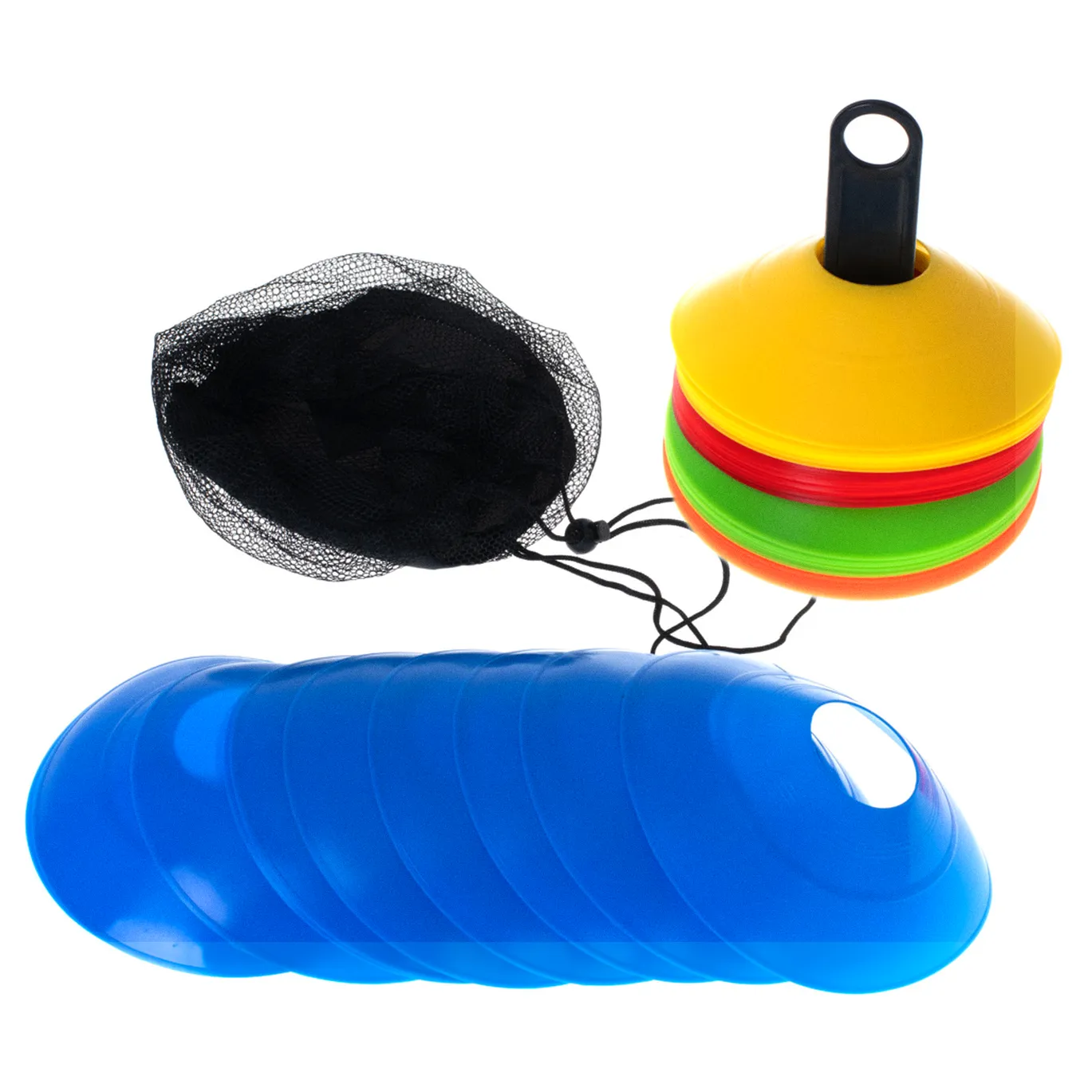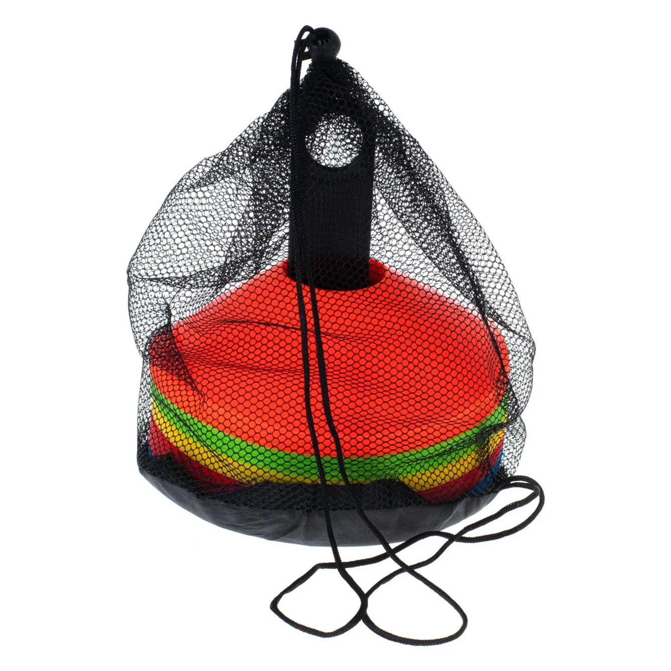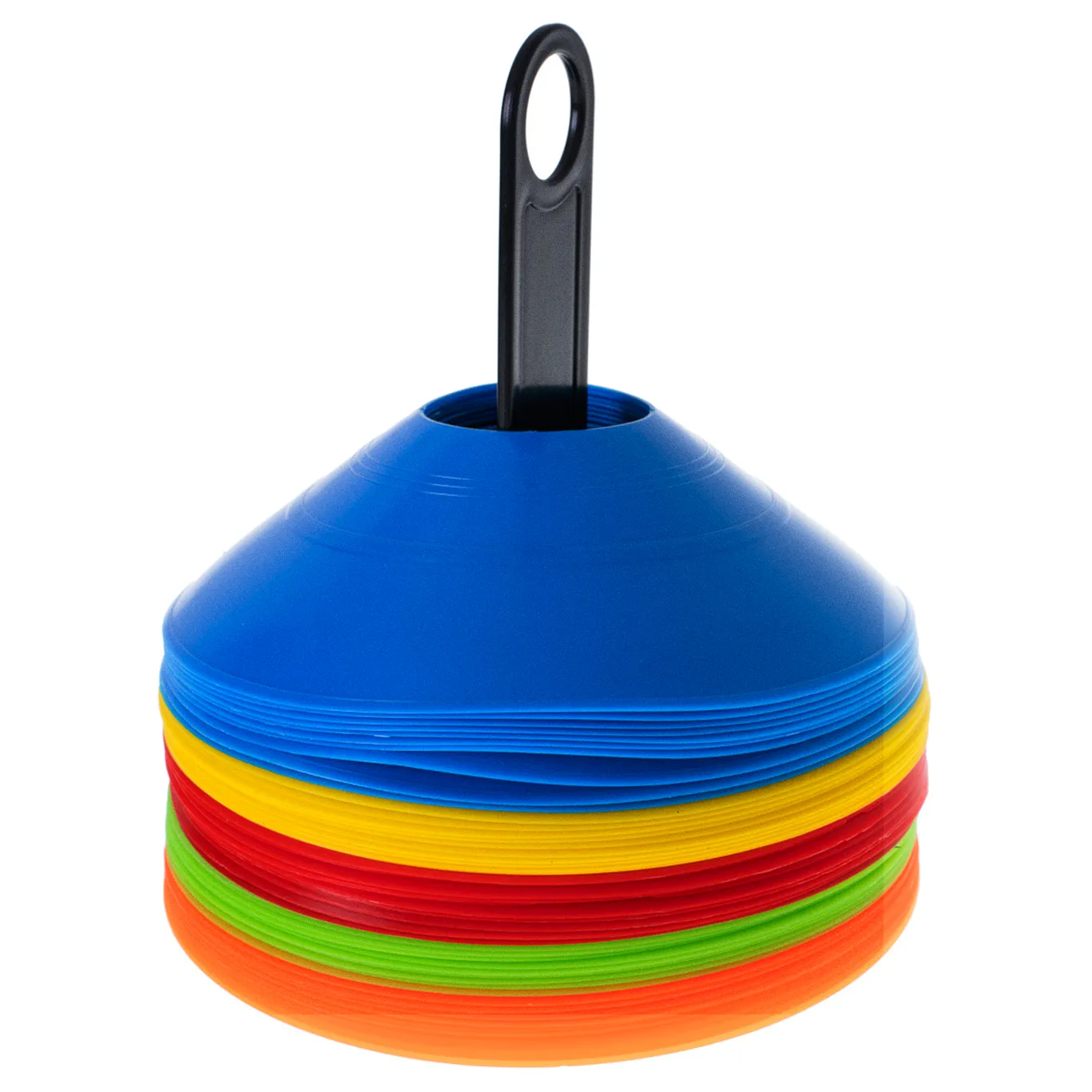 - Kolorowe – w zestawie znajduje się, aż 5 różnych kolorów pachołków co ułatwi oznaczanie poszczególnych stref ćwiczeń.