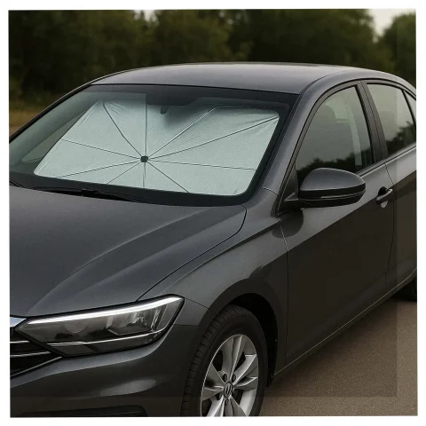 Ten problem można rozwiązać w wyjątkowo prosty sposób! Na pomoc przyjdzie Ci parasol przeciwsłonecznych na przednią szybę samochodu!