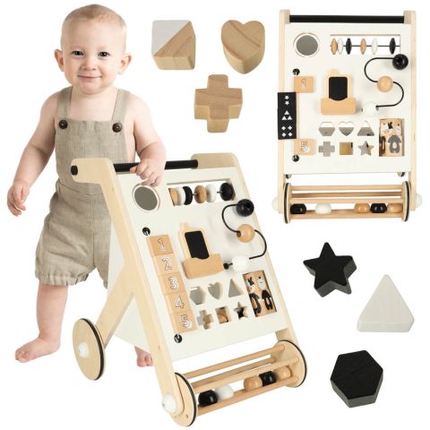 Pchacz dla dziecka chodzik drewniany tablica manipulacyjna sorter