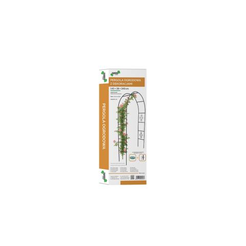 Pergola ogrodowa ze stali malowanej proszkowo, odpornej na korozję i warunki atmosferyczne. Konstrukcja łukowa zapewnia stabilne podparcie dla roślin pnących. Wymiary 240×140×38 cm umożliwiają uniwersalne zastosowanie w ogrodzie lub na tarasie.