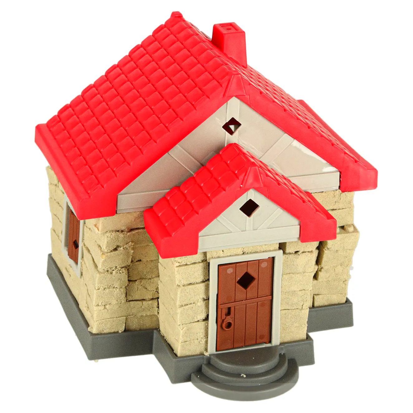 Twoje dziecko może najpierw ułożyć cegiełki z piasku i zbudować z nich swój pierwszy domek. Potem dołoży okna i drzwi, aby konstrukcja wyglądała jak prawdziwy mały dom. Na końcu wystarczy położyć dach i gotowe, maluch stworzy własną budowlę pochłoniety fantastyczną zabawą.