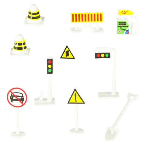 • Zestaw z dodatkowymi elementami – figurki, znaki i naklejki, które dodają realizmu