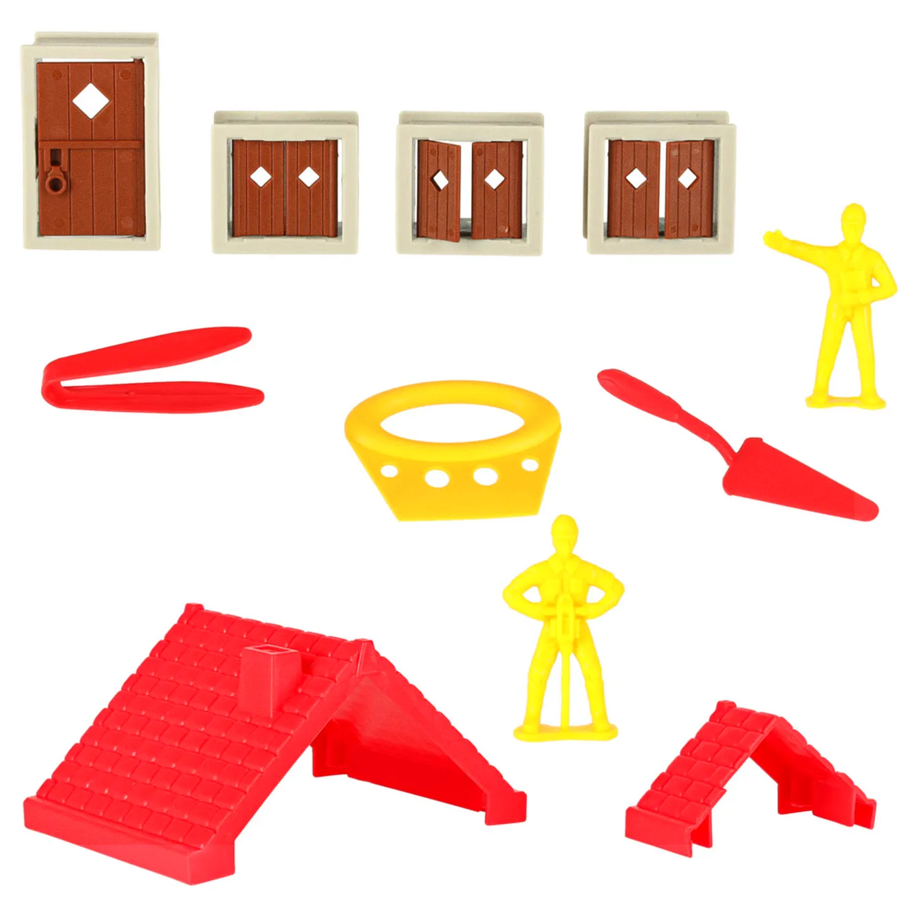 • Elementy do budowy domku (fundamenty, dach, drzwi, okna, framugi drzwi i okien)