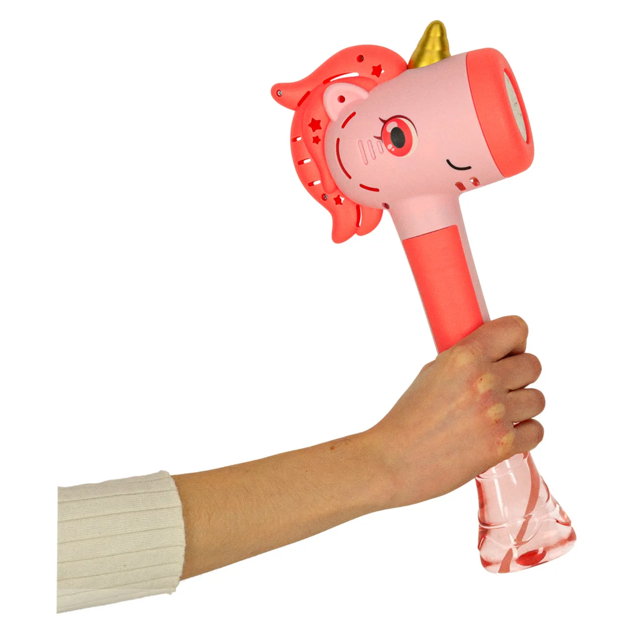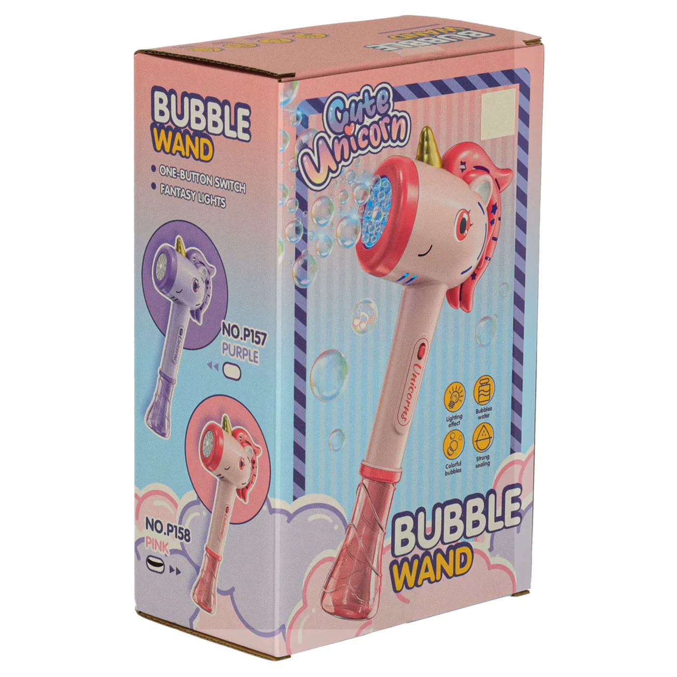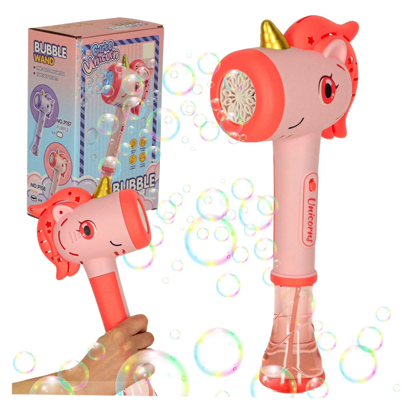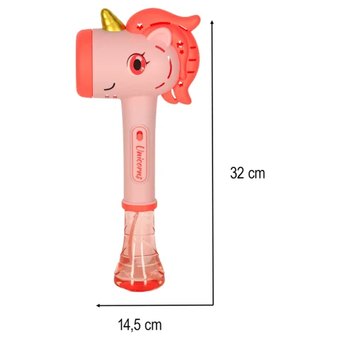 Nasza maszynka do baniek mydlanych w kształcie jednorożca łączy dziecięcą fascynację tymi magicznymi stworzeniami z radością zabawy bańkami mydlanymi. To produkt, który dzięki atrakcyjnemu designowi z pewnością trafi w gust najmłodszych.