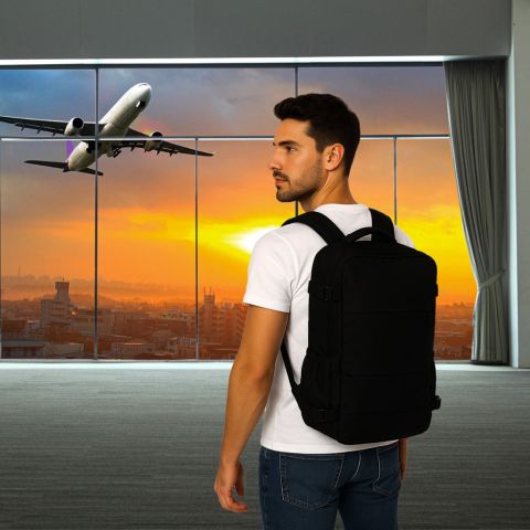 Trzykomorowy plecak podróżny czarny 45 x 30 cm