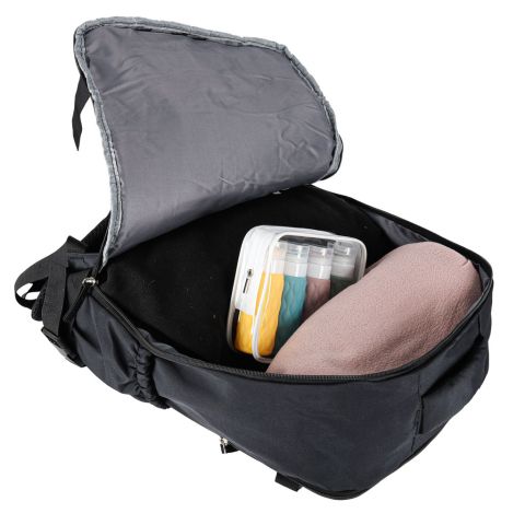 Turystyczny plecak o charakterze bagażu podręcznego przyda się zarówno podczas weekendowych wycieczek, jak i długich wyjazdów na wakacje. Zapewnia wiele miejsca do spakowania niezbędnych rzeczy, które chcesz mieć pod ręką. Zaletą plecaka jest dodatkowa dolna komora, która pozwala dopakować dodatkowe przedmioty do plecaka. Można go ścisnąć za pomocą pasów kompresyjnych, dzięki czemu zajmuje bardzo mało miejsca.