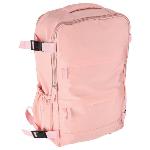 Różowy plecak podróżny na wyjazdy i piesze wędrówki. Służy jako uniwersalny plecak turystyczny – ma wygodne szelki z siateczką, pasy kompresyjne oraz dużą ilość kieszeni. Wymiary 45 cm x 30 cm są optymalne dla dodatkowego bagażu podręcznego.
