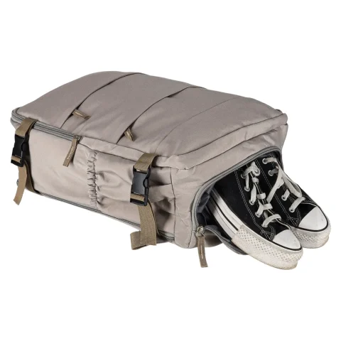 Wielofunkcyjny plecak podróżny znajdzie zastosowanie zarówno podczas weekendowych wyjazdów, jak i w czasie urlopu. Trzy komory oraz duża ilość kieszeni umożliwia dokładne i kompleksowe spakowanie plecaka na drogę. Boczne kieszenie na gumce pomieszczą termos lub butelkę z wodą, zaś przednie zapinane kieszenie są przeznaczone na drobne akcesoria.