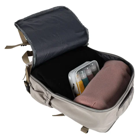 Plecak jest pojemny, a jednocześnie zajmuje niewiele miejsca w bagażu. To zasługa pasów kompresyjnych, które pozwalają ścisnąć plecak na tyle, że może zmieścić się w aucie lub pod fotelem. Szelki z przewiewną siateczką pozwalają rozłożyć ciężar równomiernie, nie obciążając przy tym pleców.