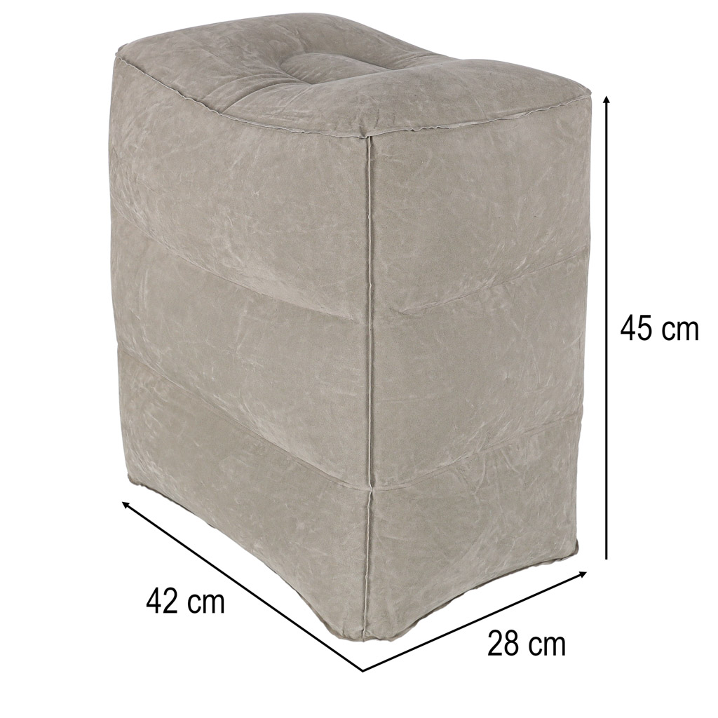 • Wygodna dmuchana pufa – jej miękka i przyjemna w dotyku powierzchnia sprawia, że siedzenie staje się czystą przyjemnością. To komfortowe miejsce do odpoczynku, które świetnie sprawdzi się także jako praktyczny podnóżek po długim dniu