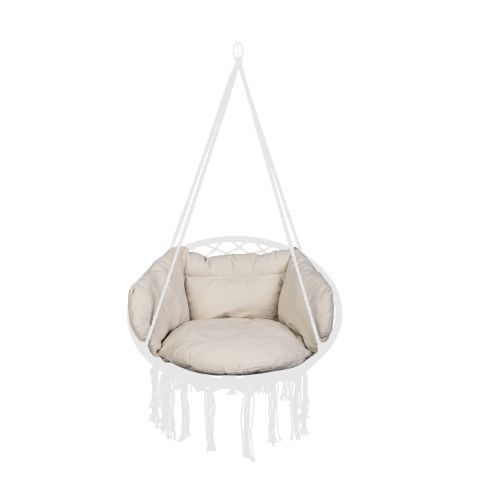 Poduszka składa się z czterech elementów połączonych ze sobą – siedzisko, oparcie i dwa elementy boczne. Wykonana jest z czterech połączonych elementów (siedzisko, oparcie i dwa elementy boczne) poduszka zapewnia idealne dopasowanie do huśtawki. A miękkie wypełnienie sprawia, że stelaż staje się niewyczuwalny, a Ty możesz oddać się beztroskiemu relaksowi. Do produkcji poduszki użyto wysokiej jakości materiałów, gwarantujących jej trwałość i odporność na zużycie. Poszewka wykonana z mieszanki bawełny (65%) i poliestru (35%) jest miękka i łatwa w czyszczeniu. Kolor ecru doskonale komponuje się z jasnymi huśtawkami, dodając im szyku.