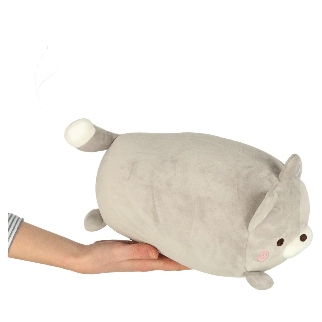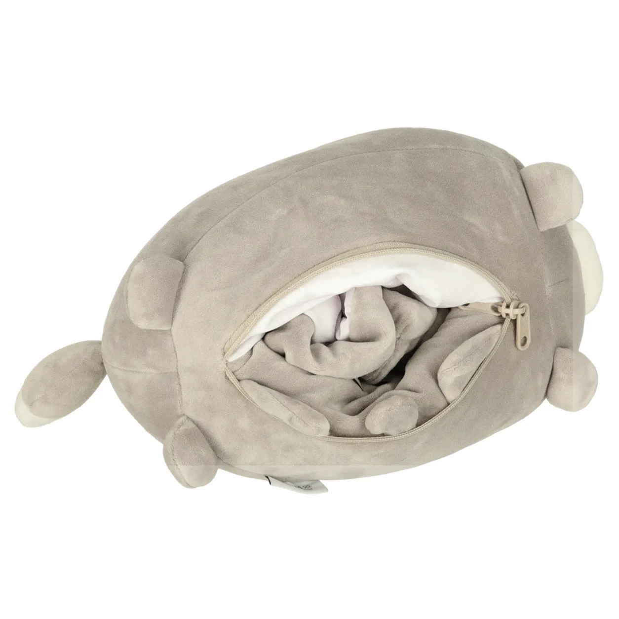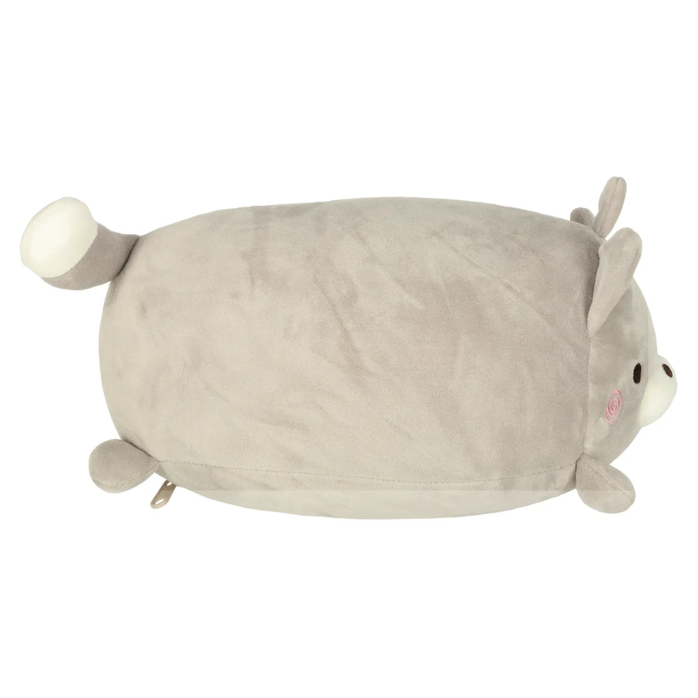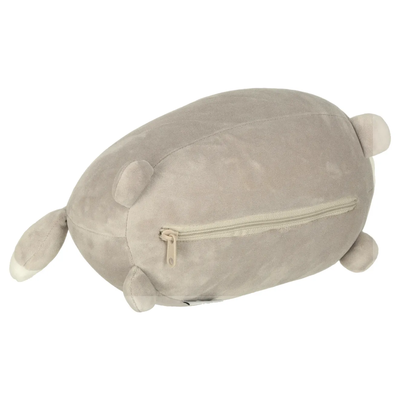 Dla dzieci: 3+. Kolor: szary. Materiał: poliester. Wypełnienie: kulki styropianowe. Funkcja: poduszka i maskotka 2w1. Waga: 187 g. Wymiary maskotki: Wysokość: 14 cm. Szerokość: 18 cm. Długość: 29 cm. Wymiary poduszki: Wysokość: 30 cm. Szerokość: 30 cm. Gł