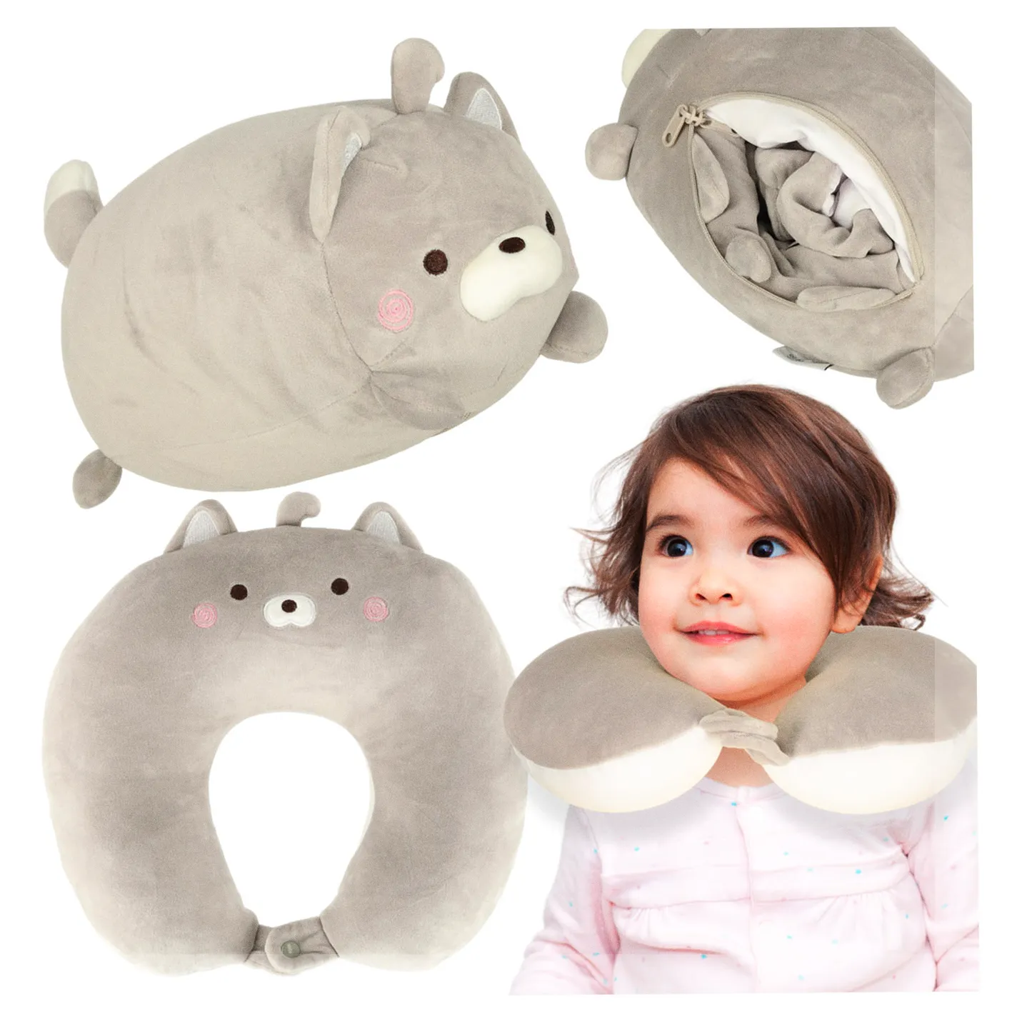 Poduszka podróżna 2w1 rogal pod kark do samolotu samochodu maskotka kot