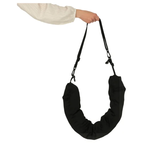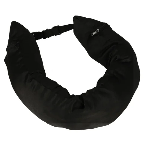 Poduszka podróżna turystyczna rogal z kieszenią, długość 80 cm, regulowany pasek 67–118 cm. Zapinana na klamrę, posiada wewnętrzną kieszeń i dwa zamki boczne zapewniające dostęp z obu stron. Utrzymuje prawidłową pozycję głowy w podróży.