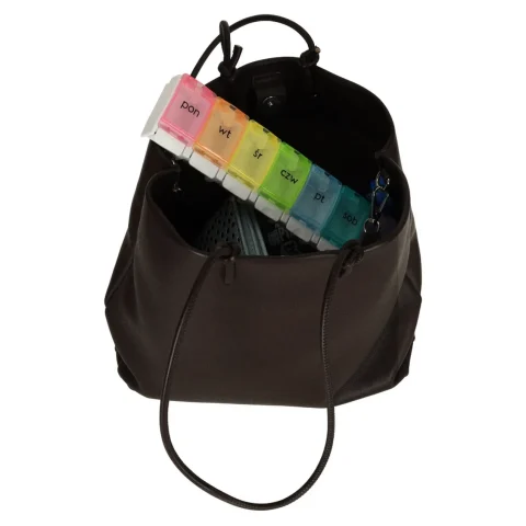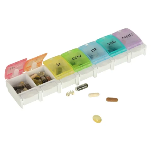 - Kolorowe kasetki ułatwią dzielenie dziennej dawki leków.