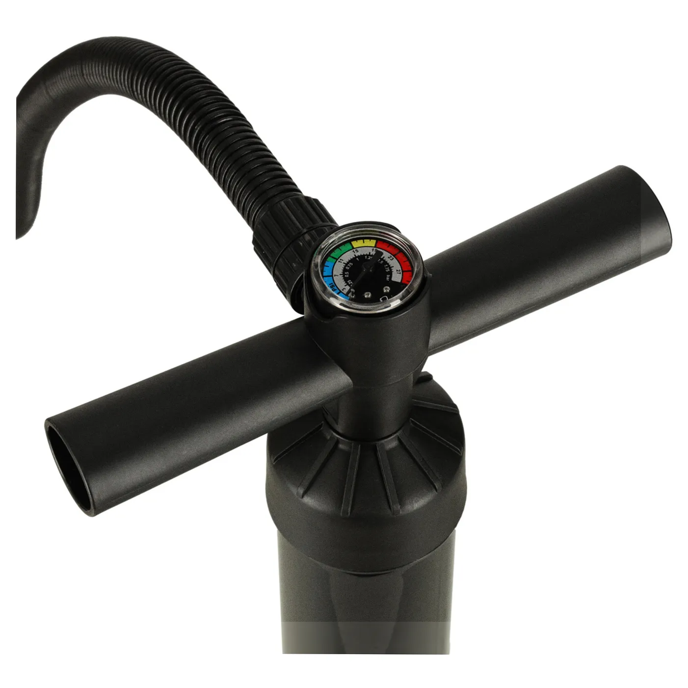 Dzięki wbudowanemu manometrowi możesz precyzyjnie kontrolować ciśnienie, co zapewnia idealne napompowanie sprzętu.