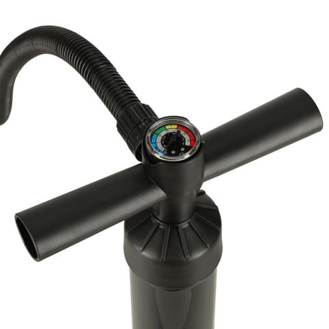 Pompka posiada stabilne podnóżki, dzięki czemu urządzenie stoi stabilnie podczas pompowania. Uchwyt w kształcie „T” gwarantuje wygodny i pewny chwyt, co przekłada się na komfort pracy. Z jej pomocą szybko przygotujesz deskę do pływania, aby cieszyć się pełnią wrażeń na wodzie!