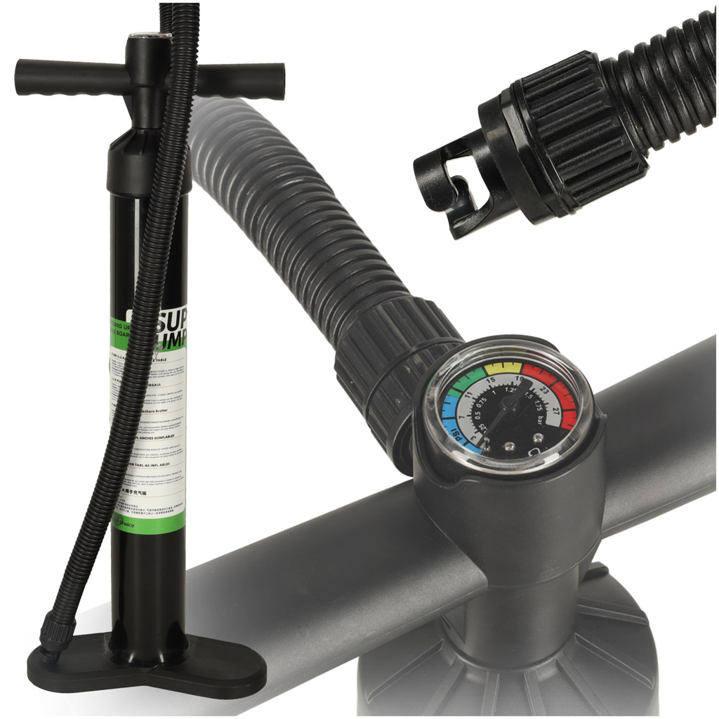 Ręczna pompka wysokociśnieniowa z manometrem to niezastąpione narzędzie, które ułatwia szybkie i skuteczne pompowanie desek SUP i innych produktów dmuchanych.