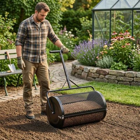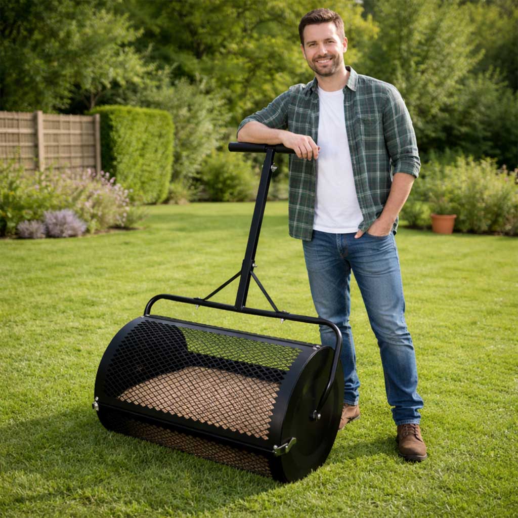 Rozsiewacz kompostu nawozu do trawnika LUARO walec siatkowy ogrodowy siewnik