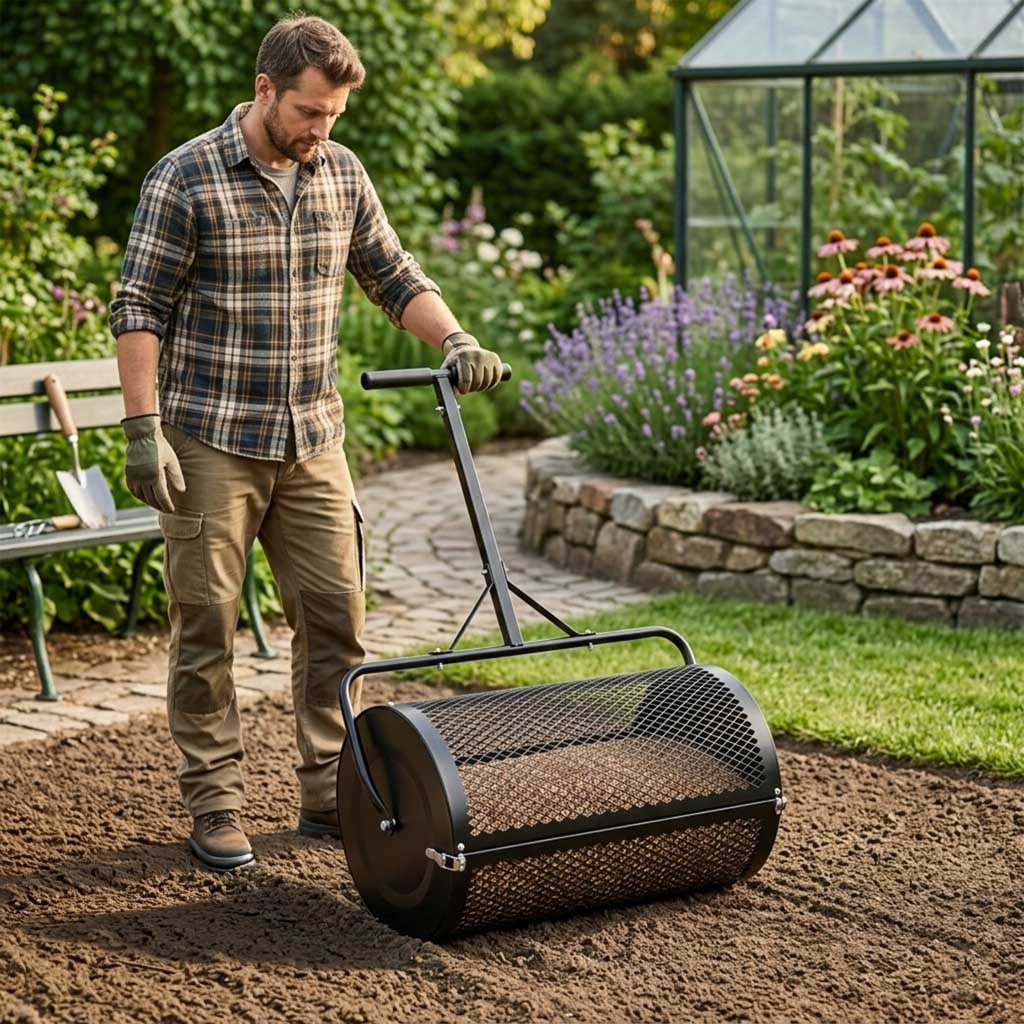Rozsiewacz kompostu nawozu do trawnika LUARO walec siatkowy ogrodowy siewnik - obrazek 10