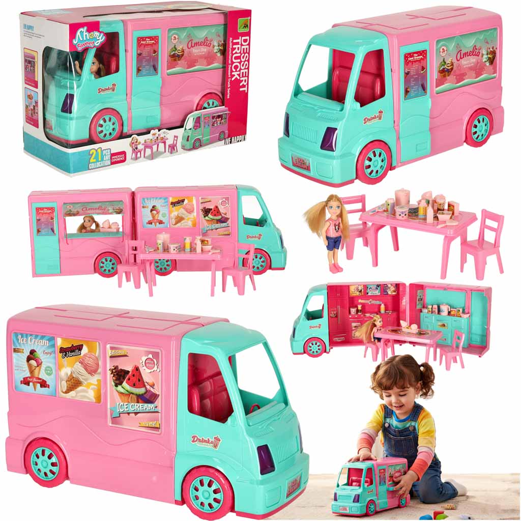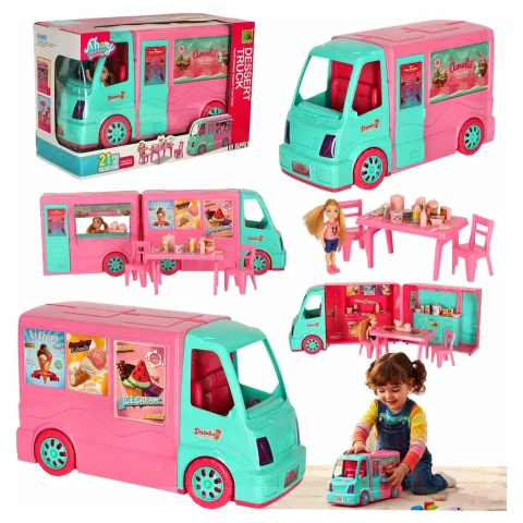 SAMOCHÓD DLA LALEK KAMPER FOOD TRUCK ZESTAW 21 EL.