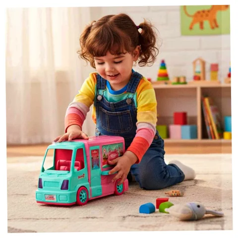 kreatywna zabawa – zabawka to połączenie mobilnego food trucka z lodami i przestronnego kampera, co umożliwia różnorodne możliwości zabawy