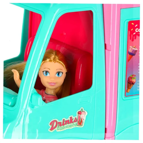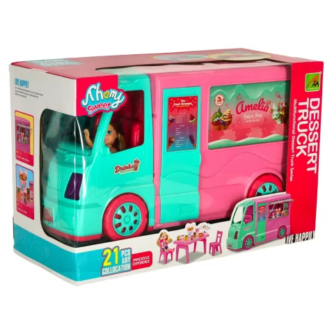 Zestaw łączy dwie funkcje – ekscytującą przygodę kulinarną, gdzie lalka serwuje pyszne lody z food trucka, oraz relaksującą podróż kamperem, który staje się przytulnym miejscem wypoczynku. Dziecko może wcielić się w rolę kreatywnego sprzedawcy lub zarządcy mobilnej lodziarni, a po zakończonym dniu otworzyć pojazd i zamienić go w komfortowy kamper, idealny na chwilę relaksu.