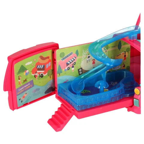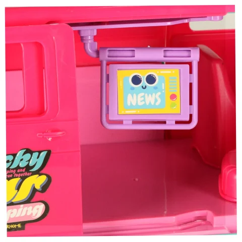 Rozkładany kamper zachęca do tworzenia historii pełnych przygód. Wysuwany telewizor, schodki, kempingowy namiot, basen i zjeżdżalnia pozwalają dzieciom budować własne scenki i odkrywać świat po swojemu. To zestaw, który rozwija wyobraźnię i naturalnie inspiruje do kreatywnej zabawy.